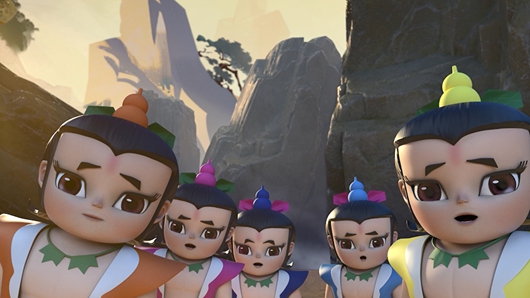 还是原来的7个四方脸、粗眉大眼、头顶葫芦冠、项戴葫芦叶的Q萌葫芦娃,还是经典台词“妖精,放了我爷爷”……熟悉的画面,让人瞬间回到那个放学后和小伙伴一起围着电视机的年代。