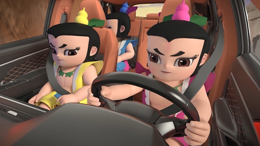 除了语言对话贴合现代年轻人日常用语,影片中各种场景也与时俱进:蛇精敷起了面膜、爷爷用起了智能手机、葫芦兄弟学会了开车,在熟悉中制造新鲜感,相当有内味。